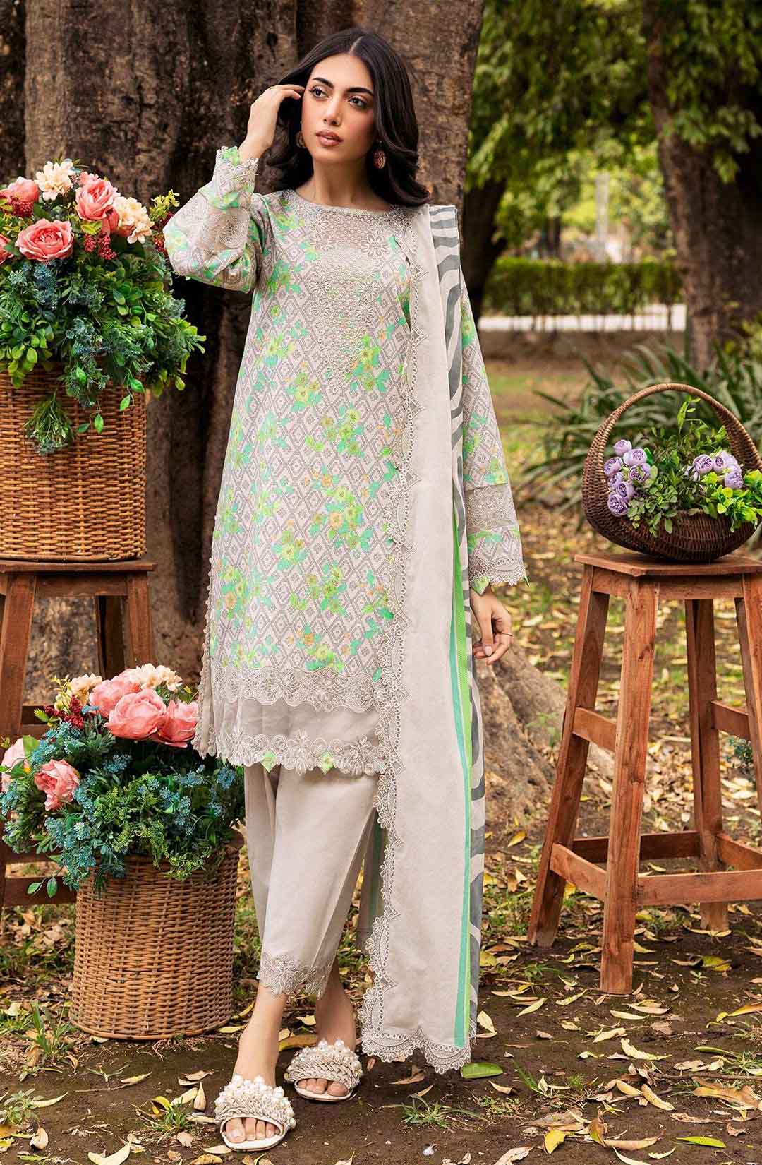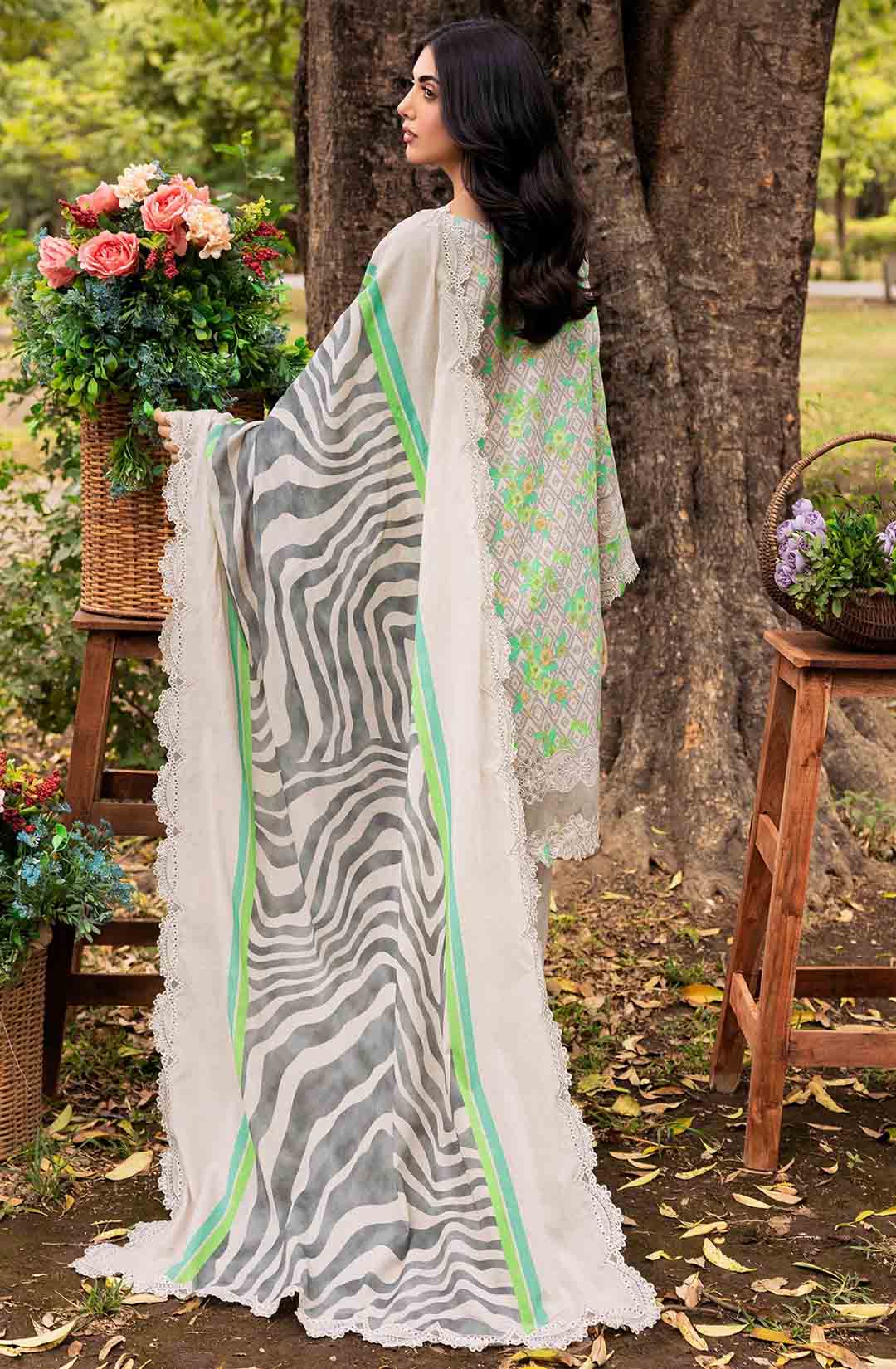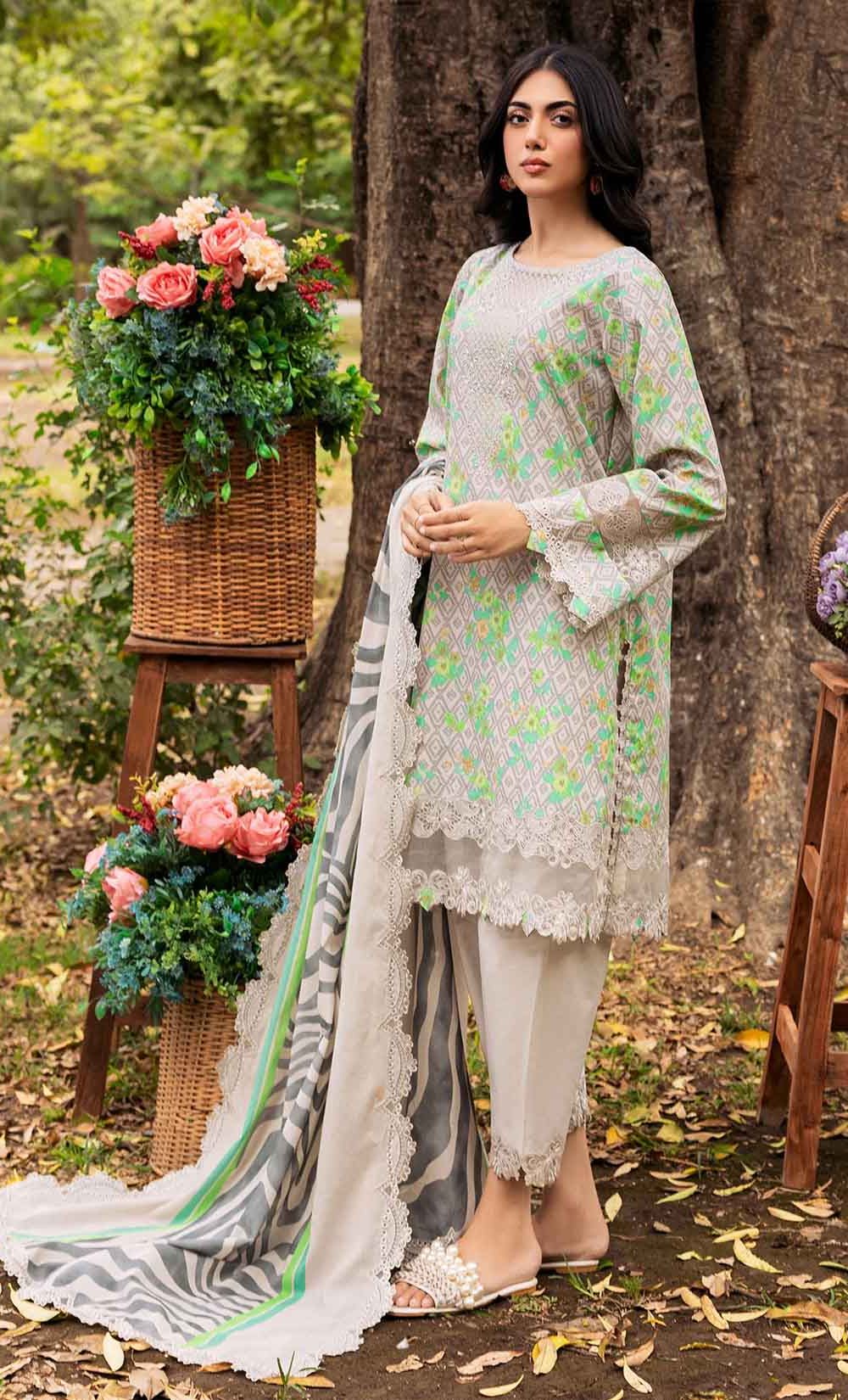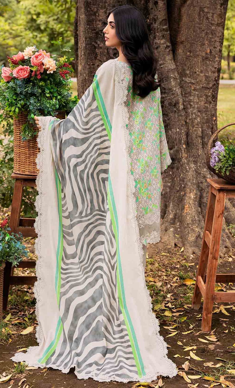 3-PC UNSTITCHED EMBROIDERED LAWN SHIRT WITH EMBROIDERED LAWN DUPATTA AND TROUSER CRN4-08
