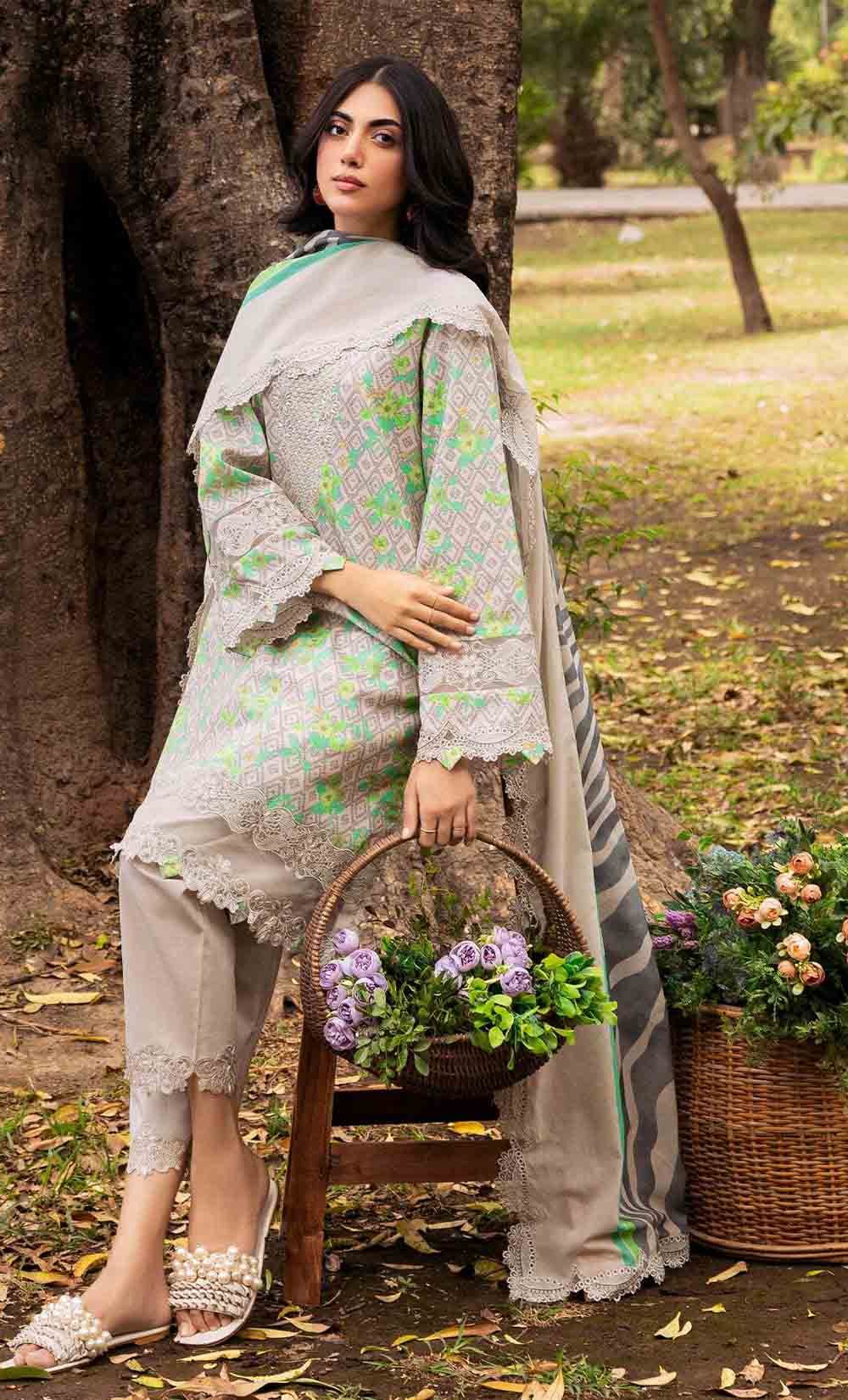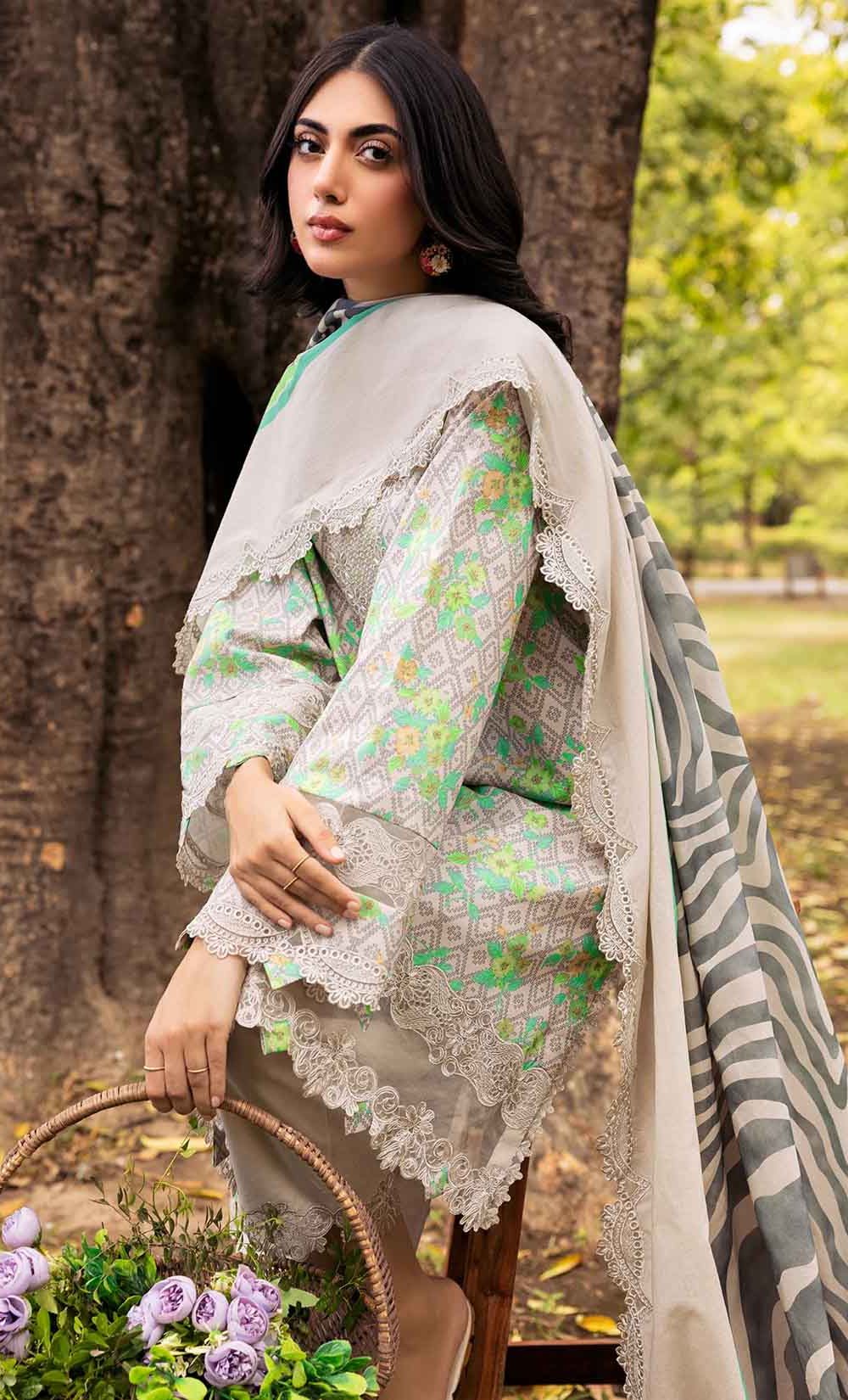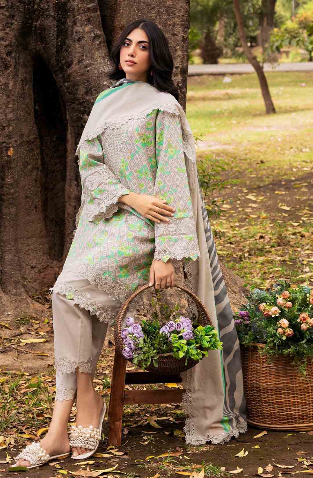 3-PC UNSTITCHED EMBROIDERED LAWN SHIRT WITH EMBROIDERED LAWN DUPATTA AND TROUSER CRN4-08