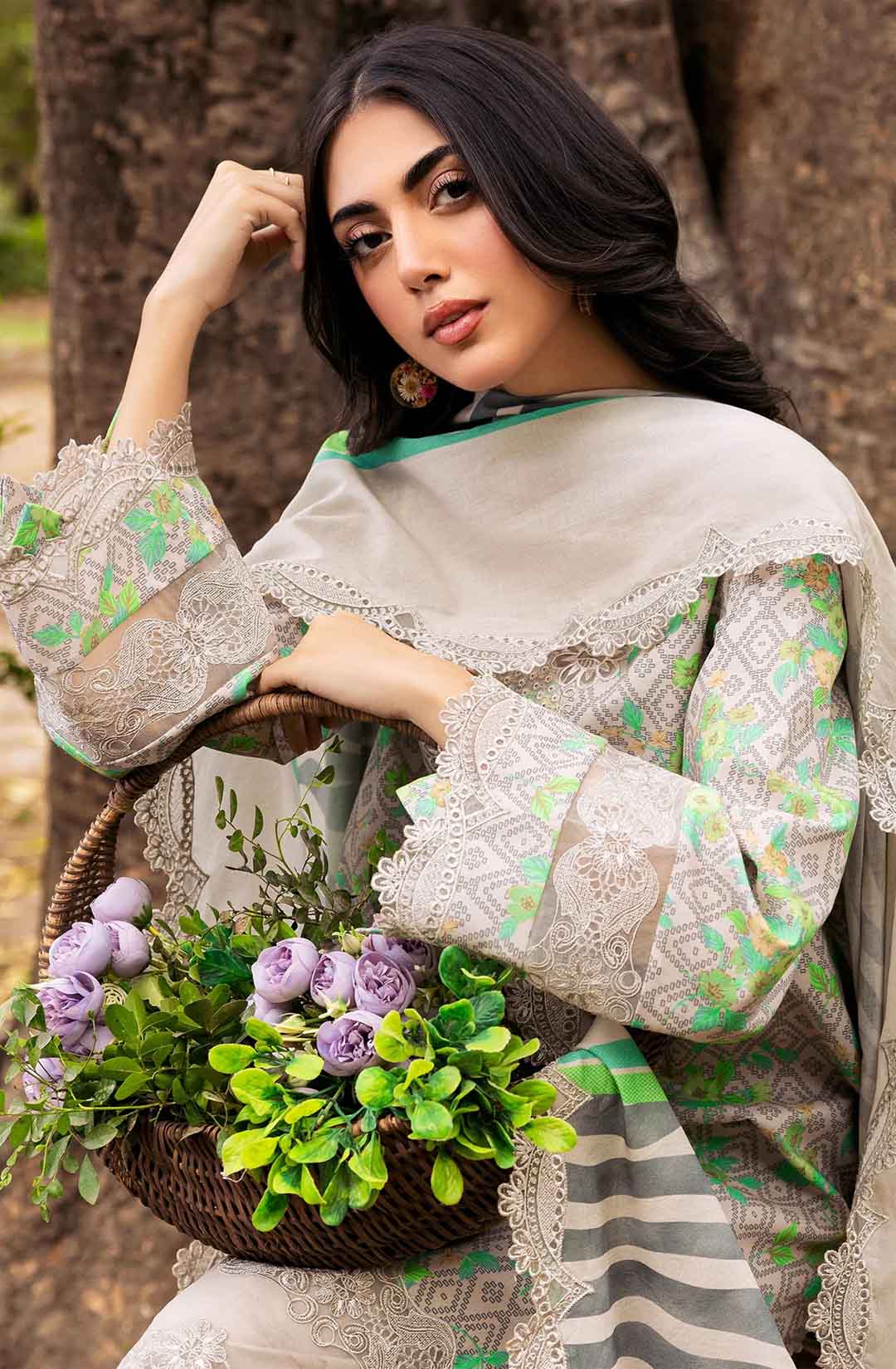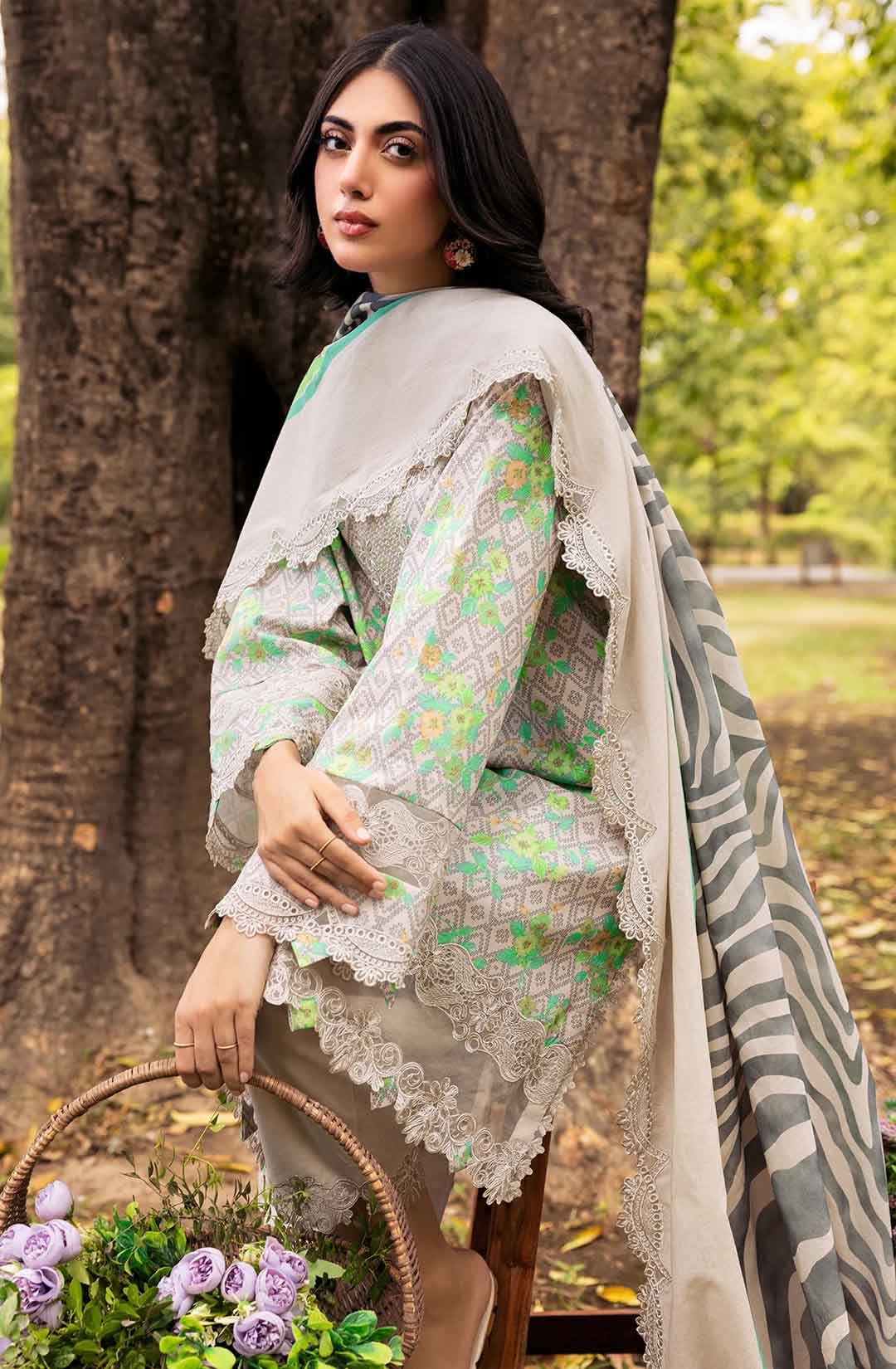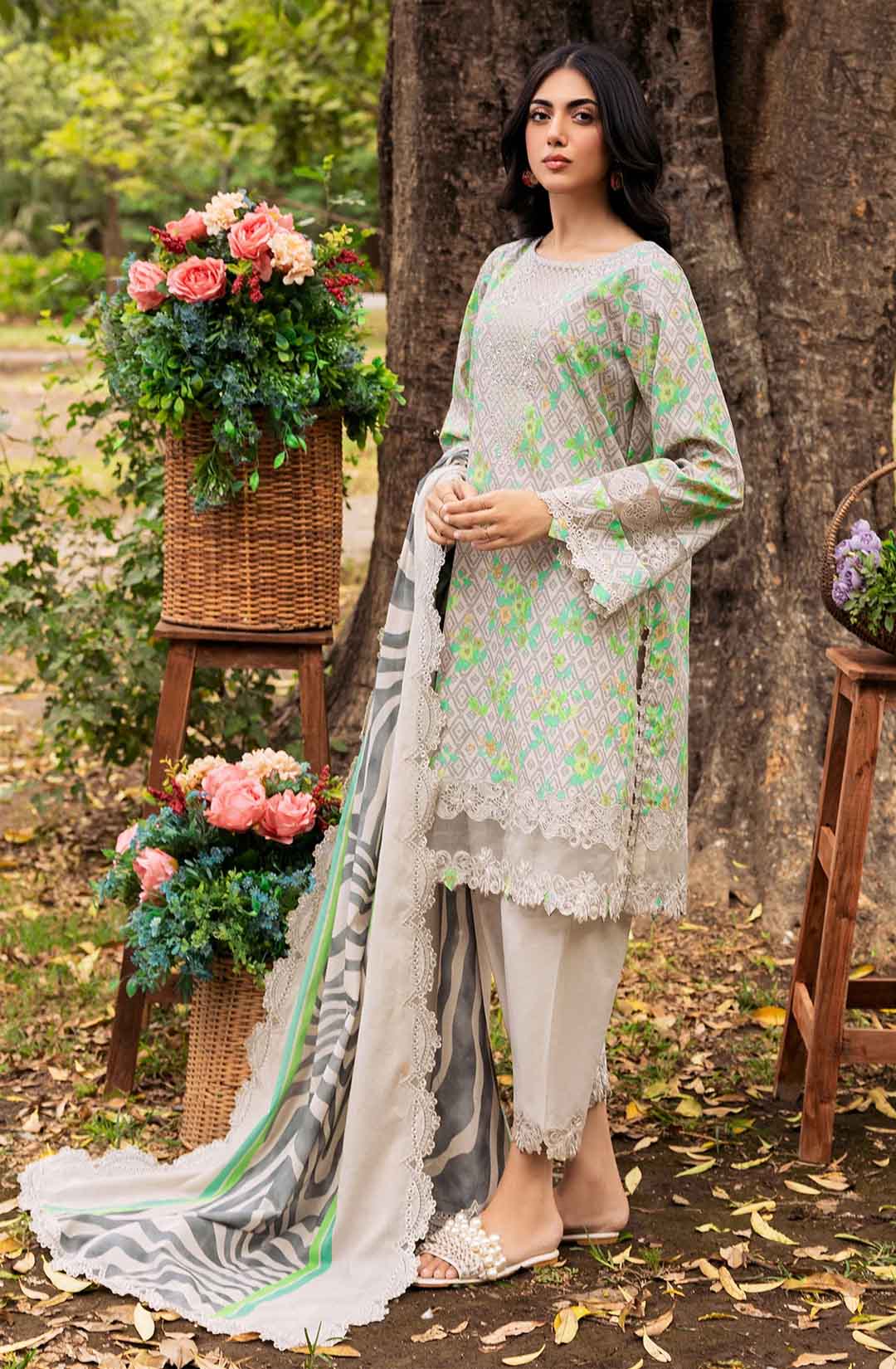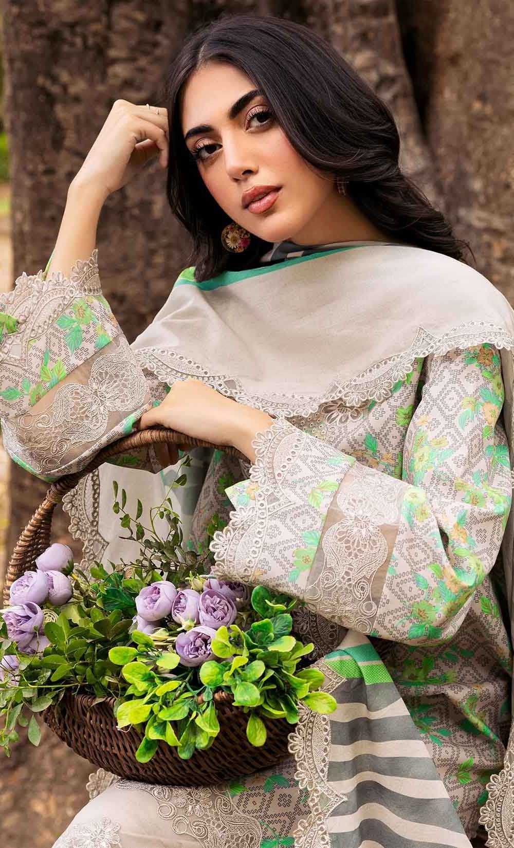 3-PC UNSTITCHED EMBROIDERED LAWN SHIRT WITH EMBROIDERED LAWN DUPATTA AND TROUSER CRN4-08