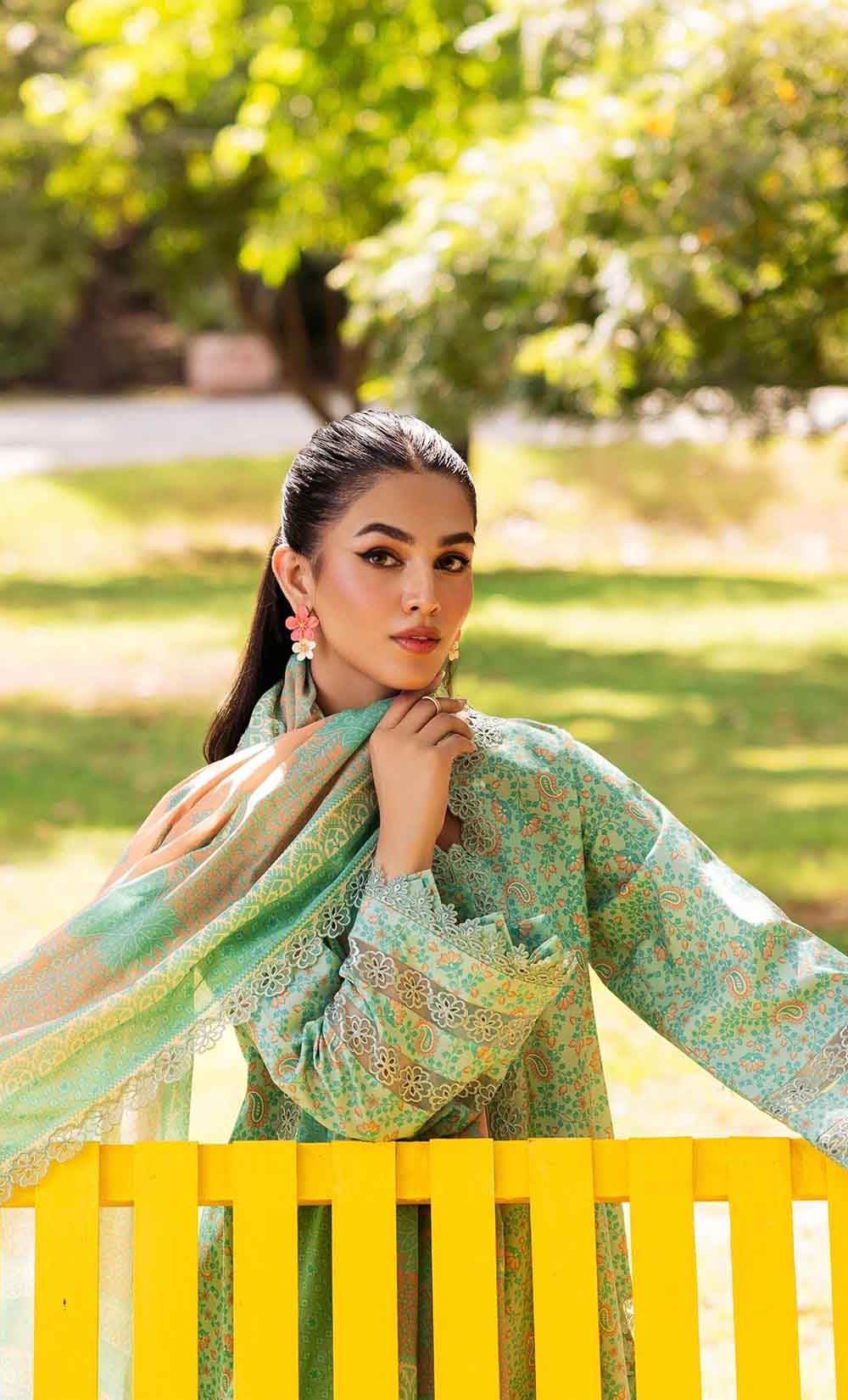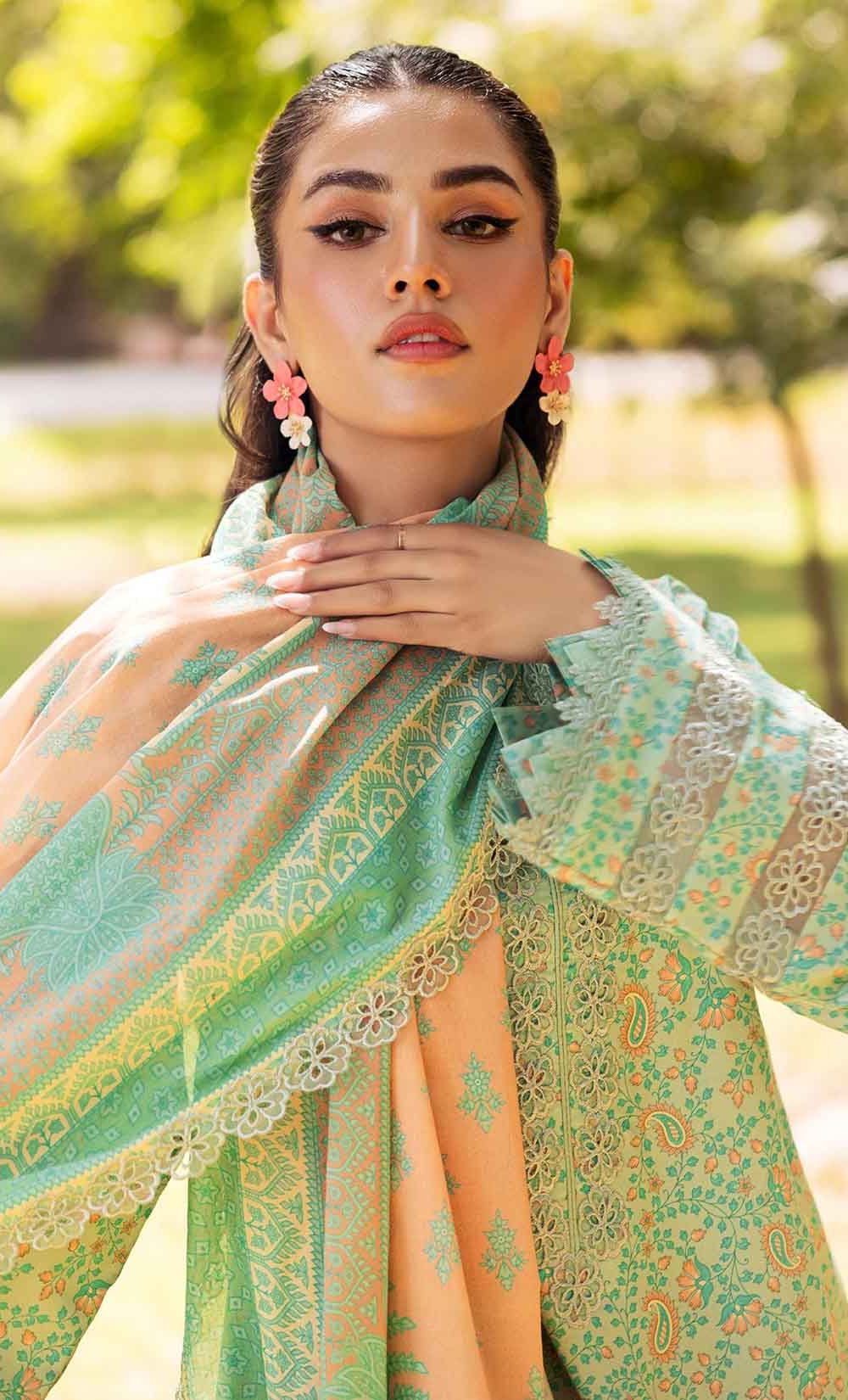 3-PC UNSTITCHED EMBROIDERED LAWN SHIRT WITH EMBROIDERED LAWN DUPATTA AND TROUSER CRN4-10