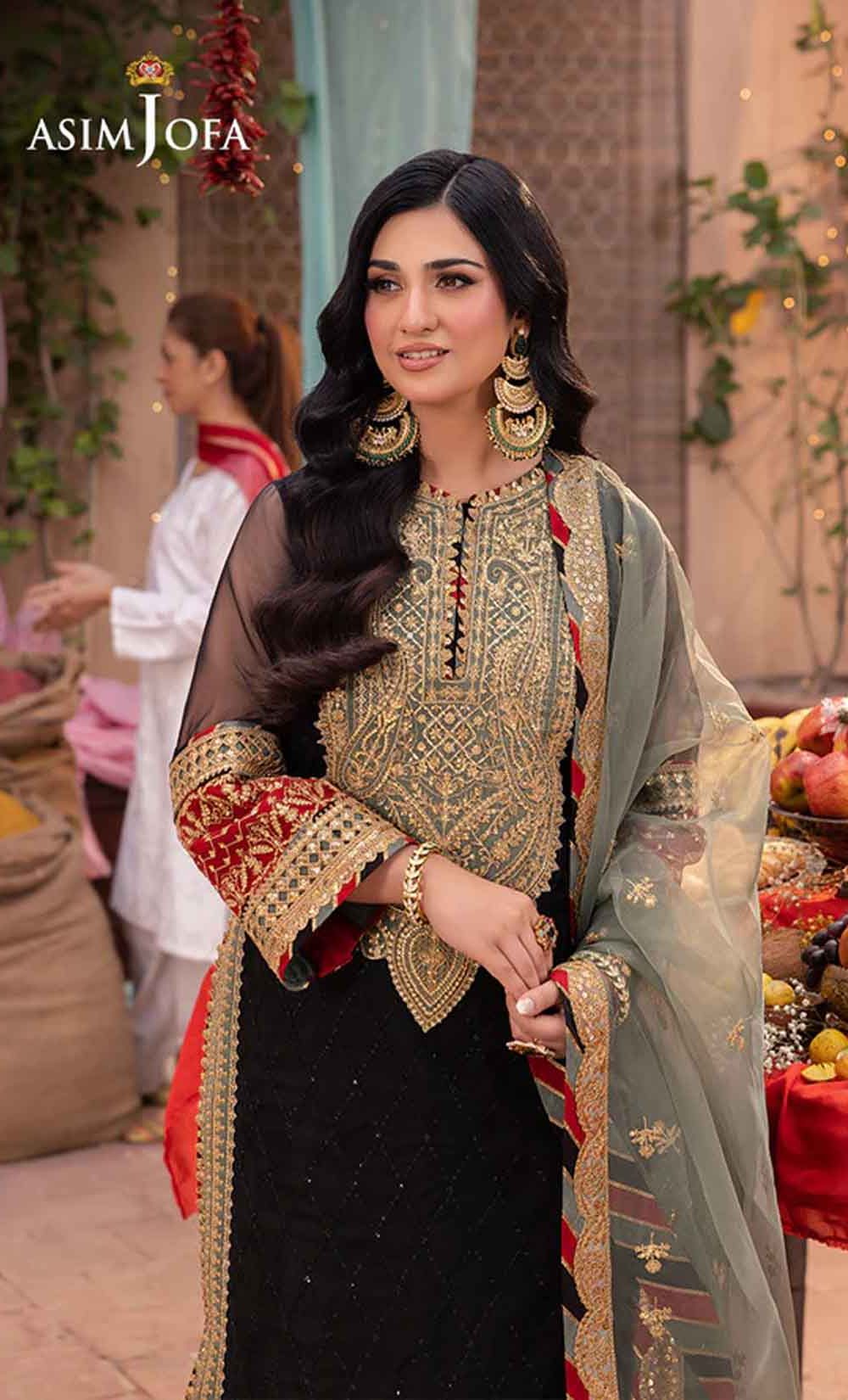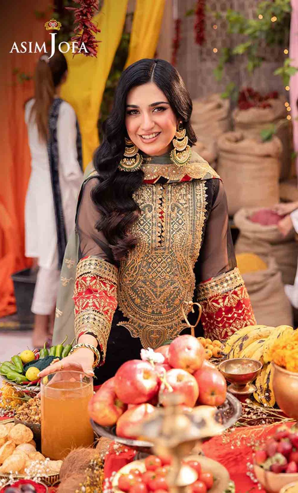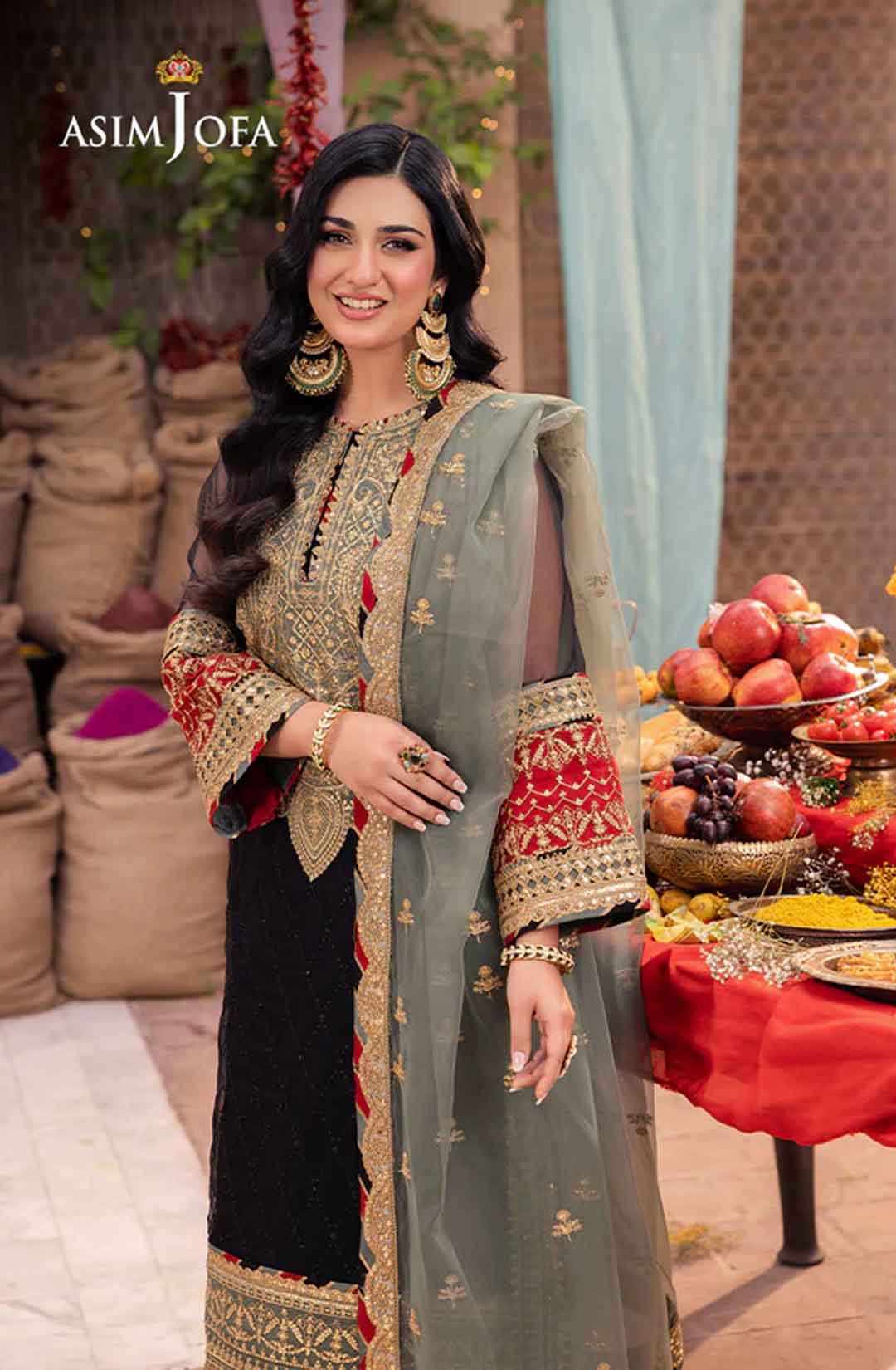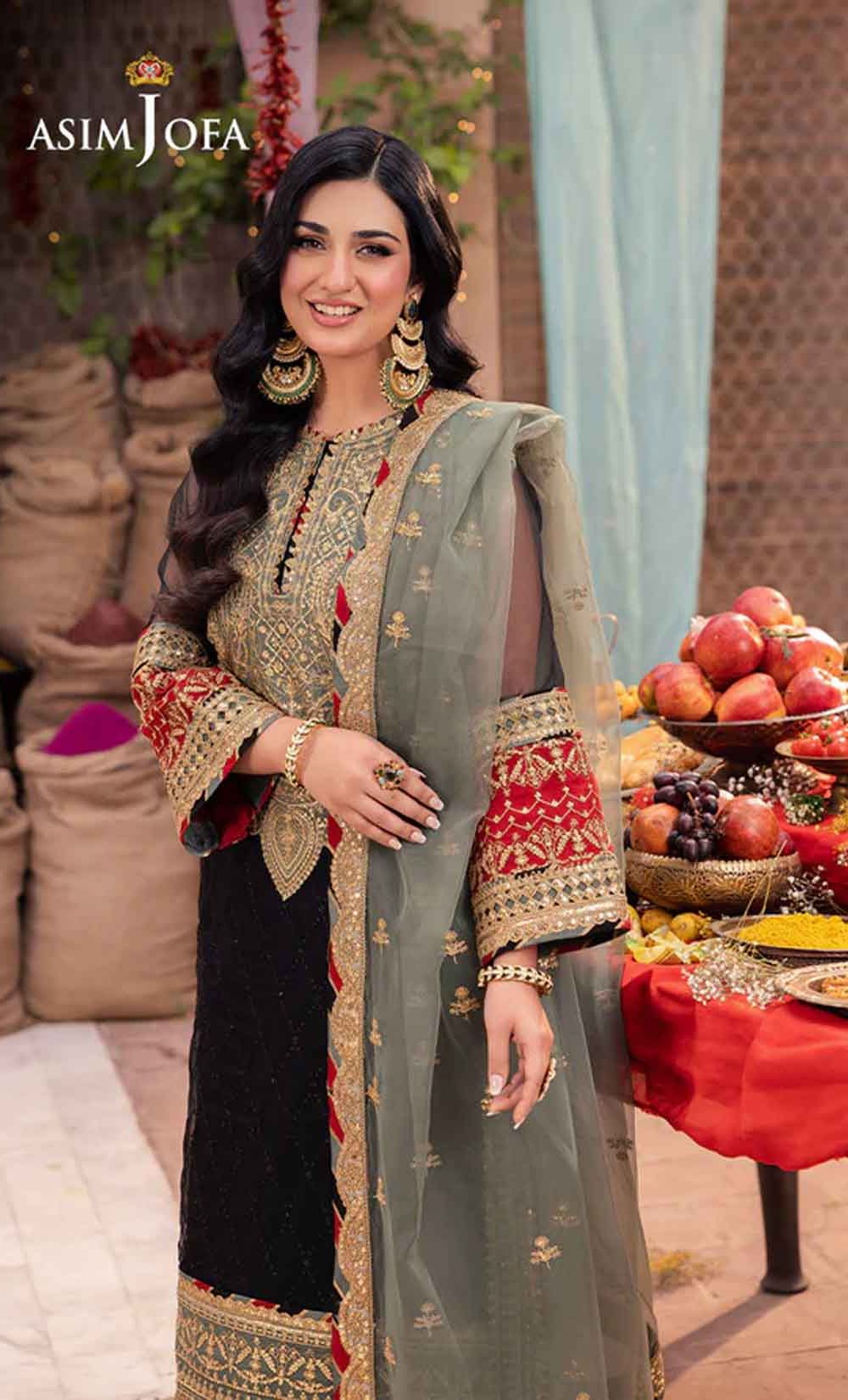 Radiate like a freshly unearthed gemstone with this intricately designed ensemble – a masterpiece waiting to be unveiled. The beautifully embroidered shirt shimmers with black sequins and threadwork, framed by a ravishing neckline and border. Gold sequins and zari work dance across the surface, while sage and rust appliques add pops of color like wildflowers blooming on a vibrant meadow. Paired with a stunning sage organza dupatta featuring beautiful embroidery, complementing the overall look, this ensemble is a captivating tale of cultural elegance, a statement piece destined to turn heads
