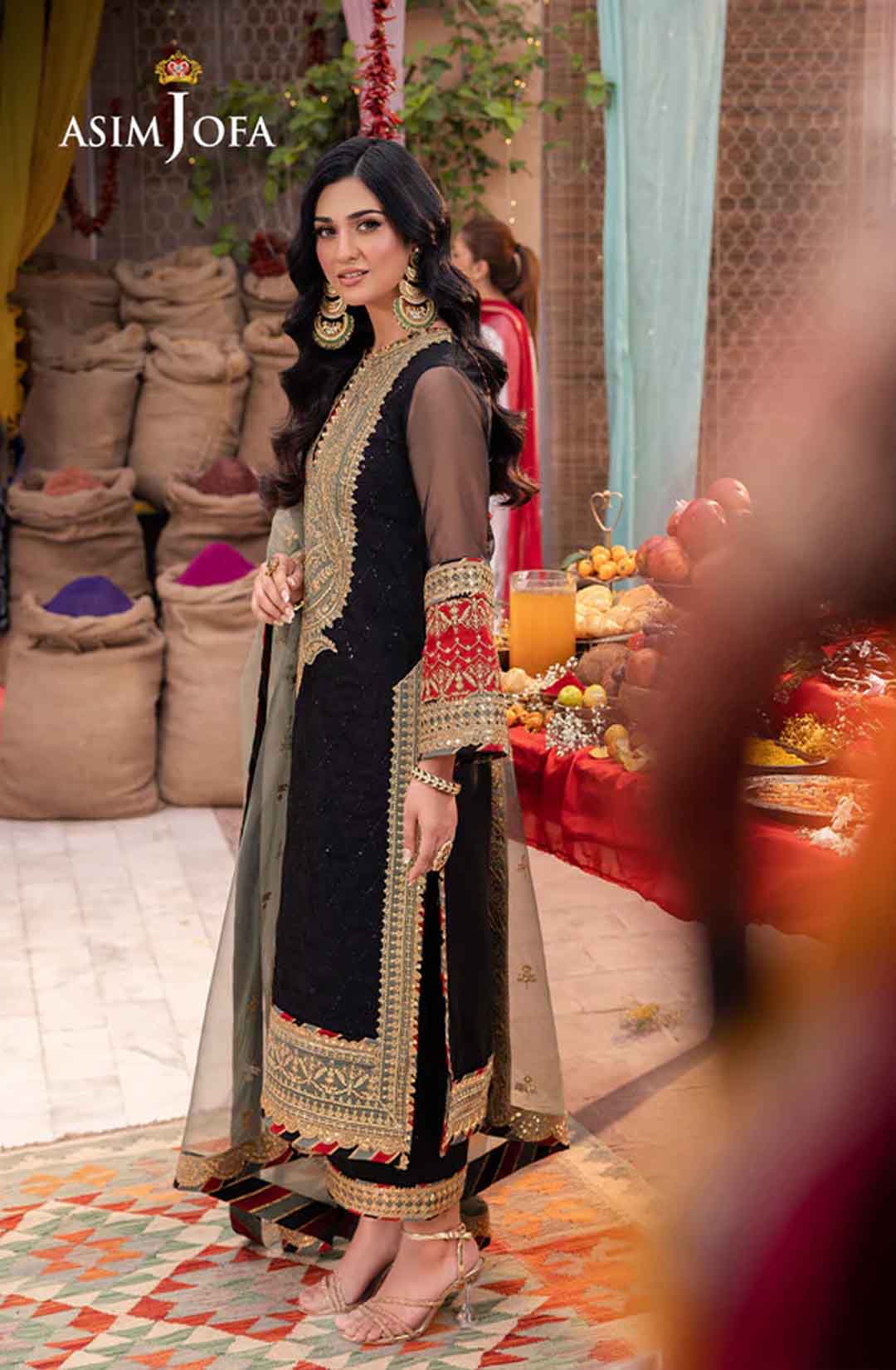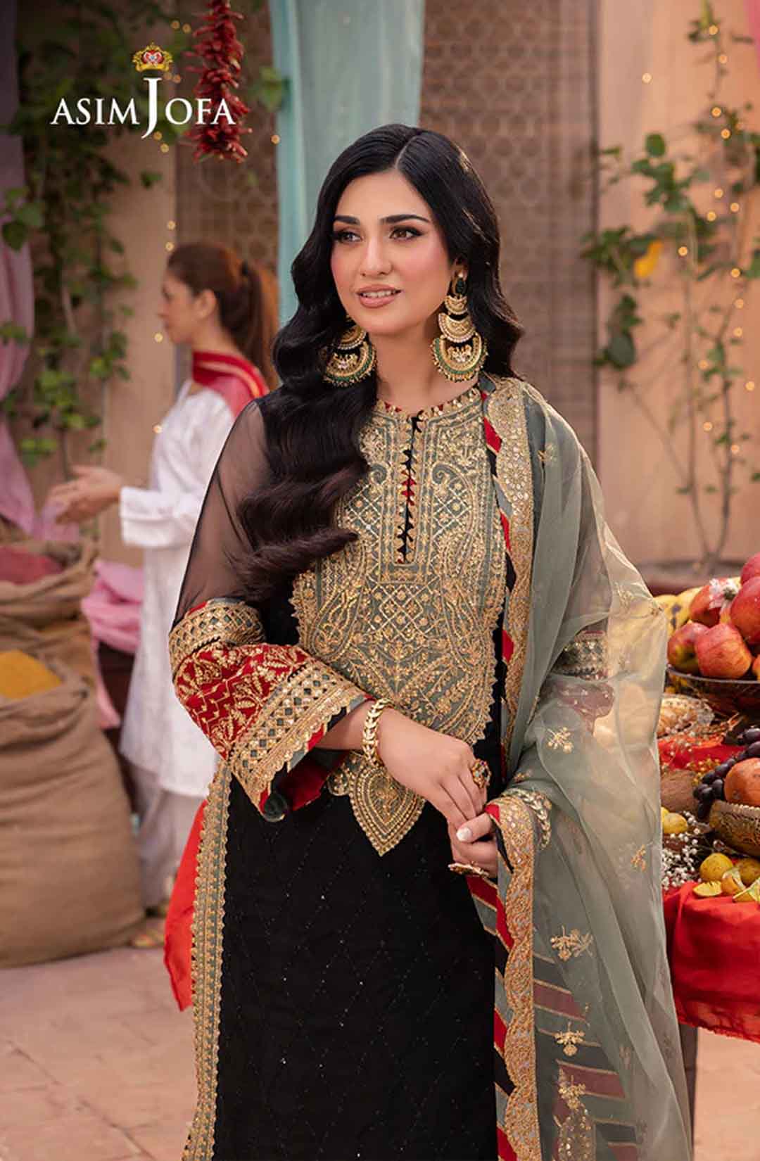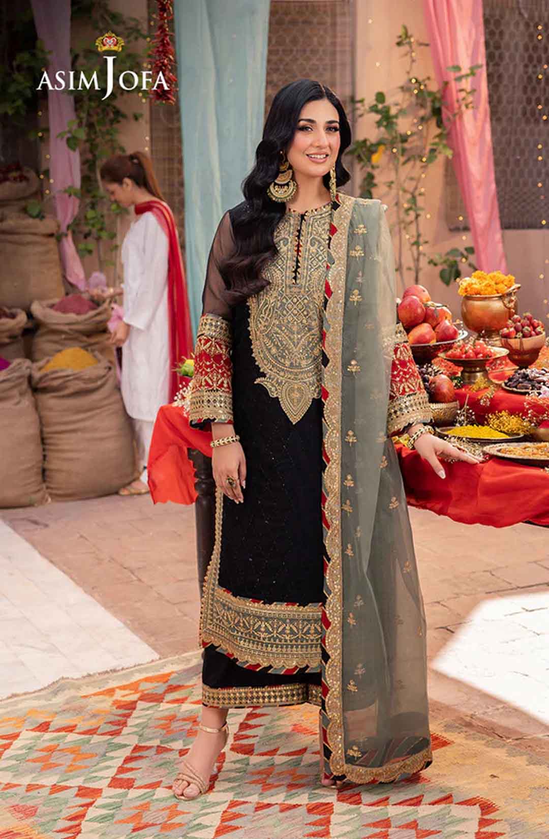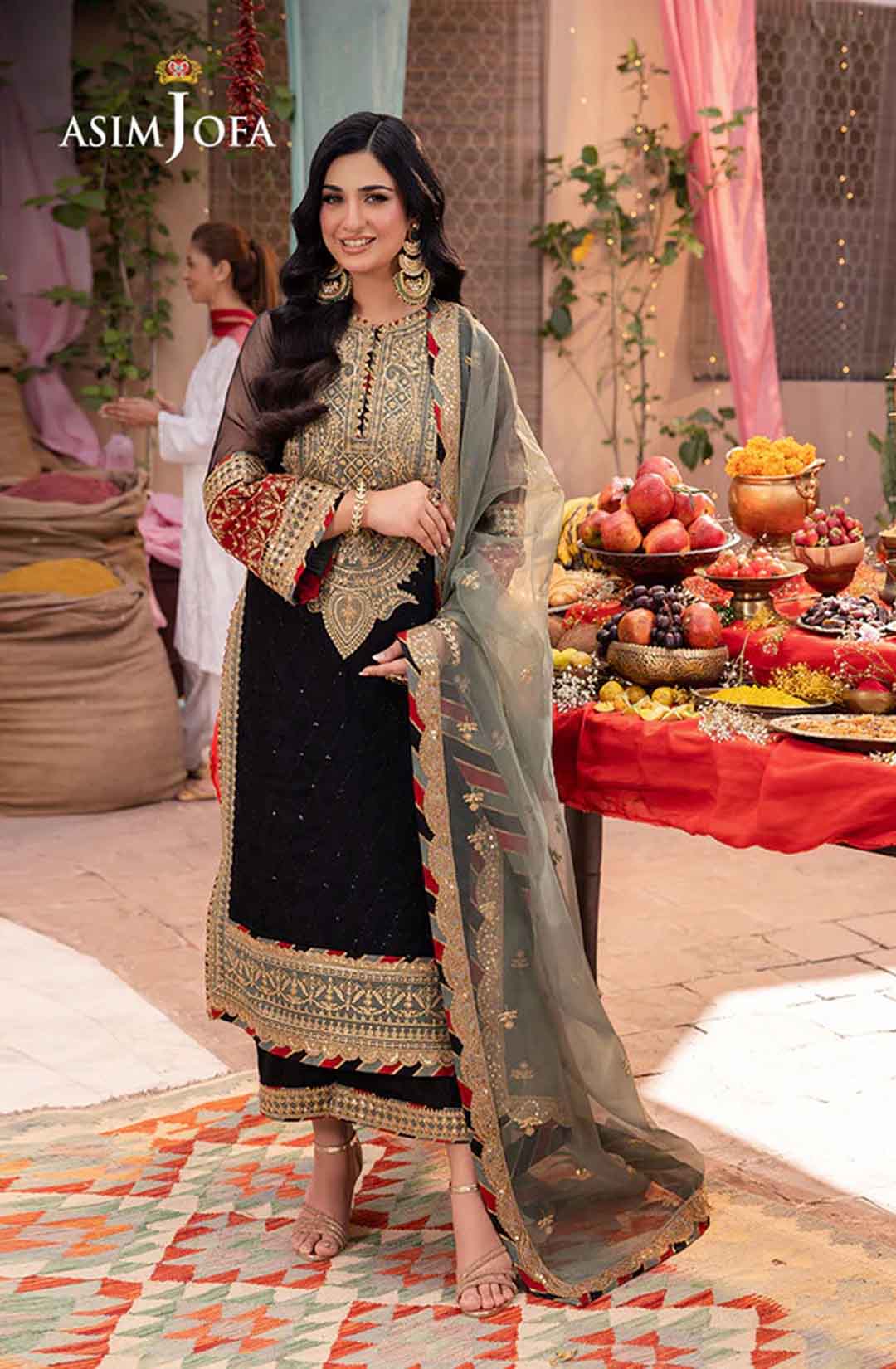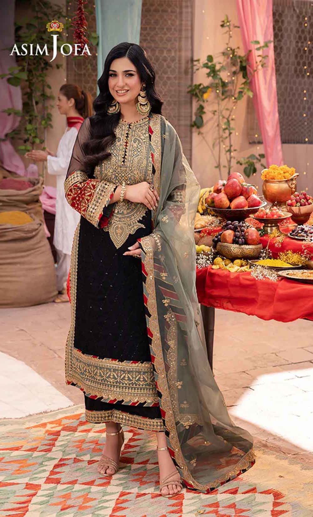 Radiate like a freshly unearthed gemstone with this intricately designed ensemble – a masterpiece waiting to be unveiled. The beautifully embroidered shirt shimmers with black sequins and threadwork, framed by a ravishing neckline and border. Gold sequins and zari work dance across the surface, while sage and rust appliques add pops of color like wildflowers blooming on a vibrant meadow. Paired with a stunning sage organza dupatta featuring beautiful embroidery, complementing the overall look, this ensemble is a captivating tale of cultural elegance, a statement piece destined to turn heads