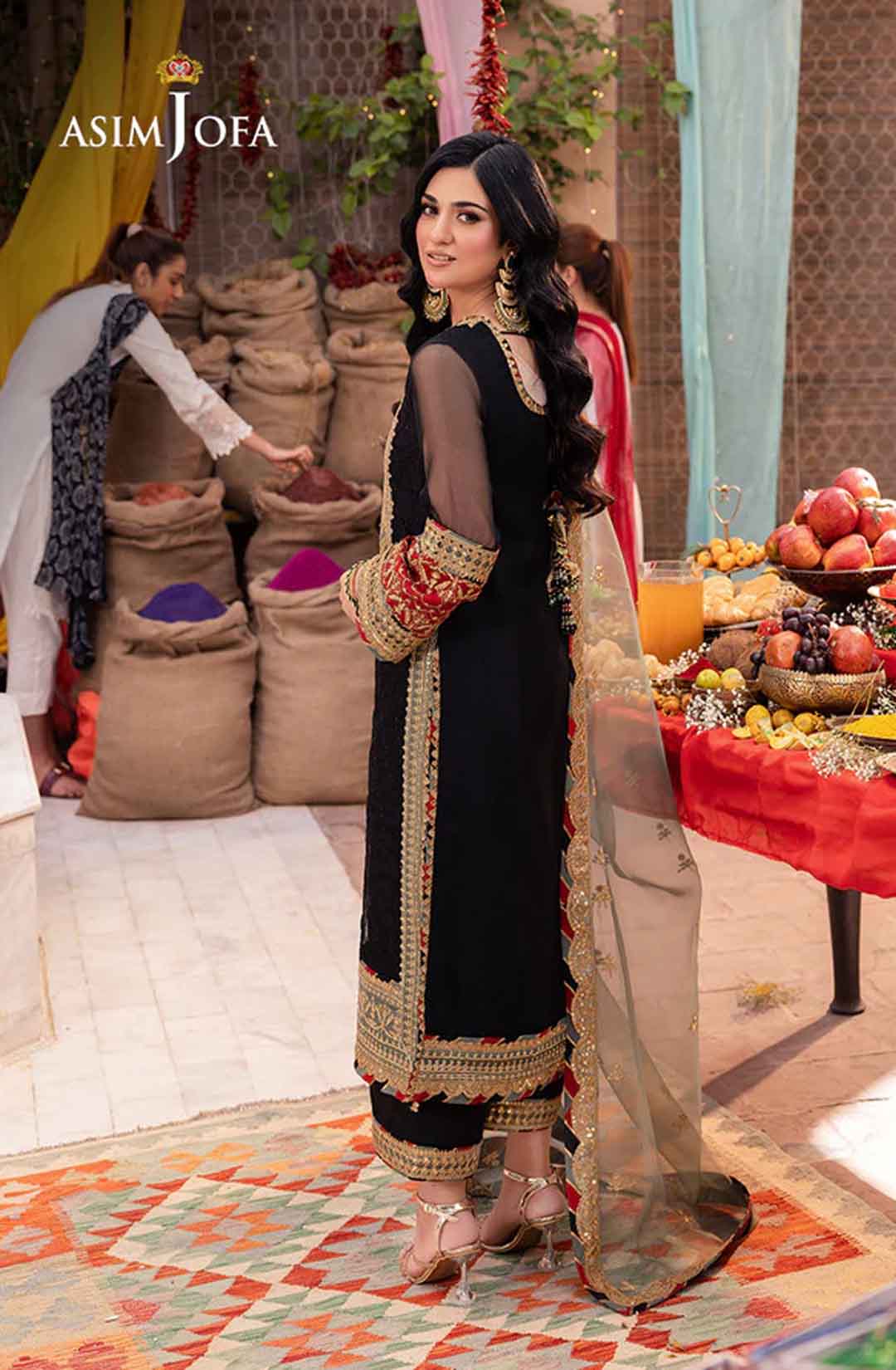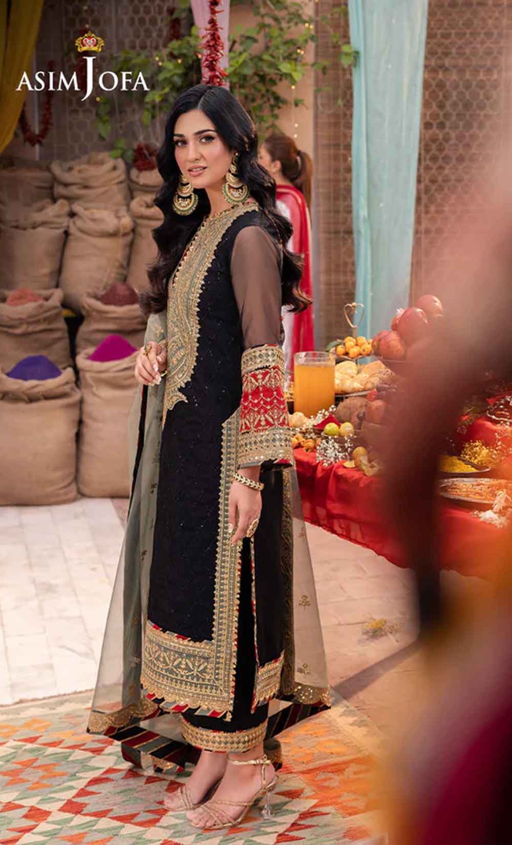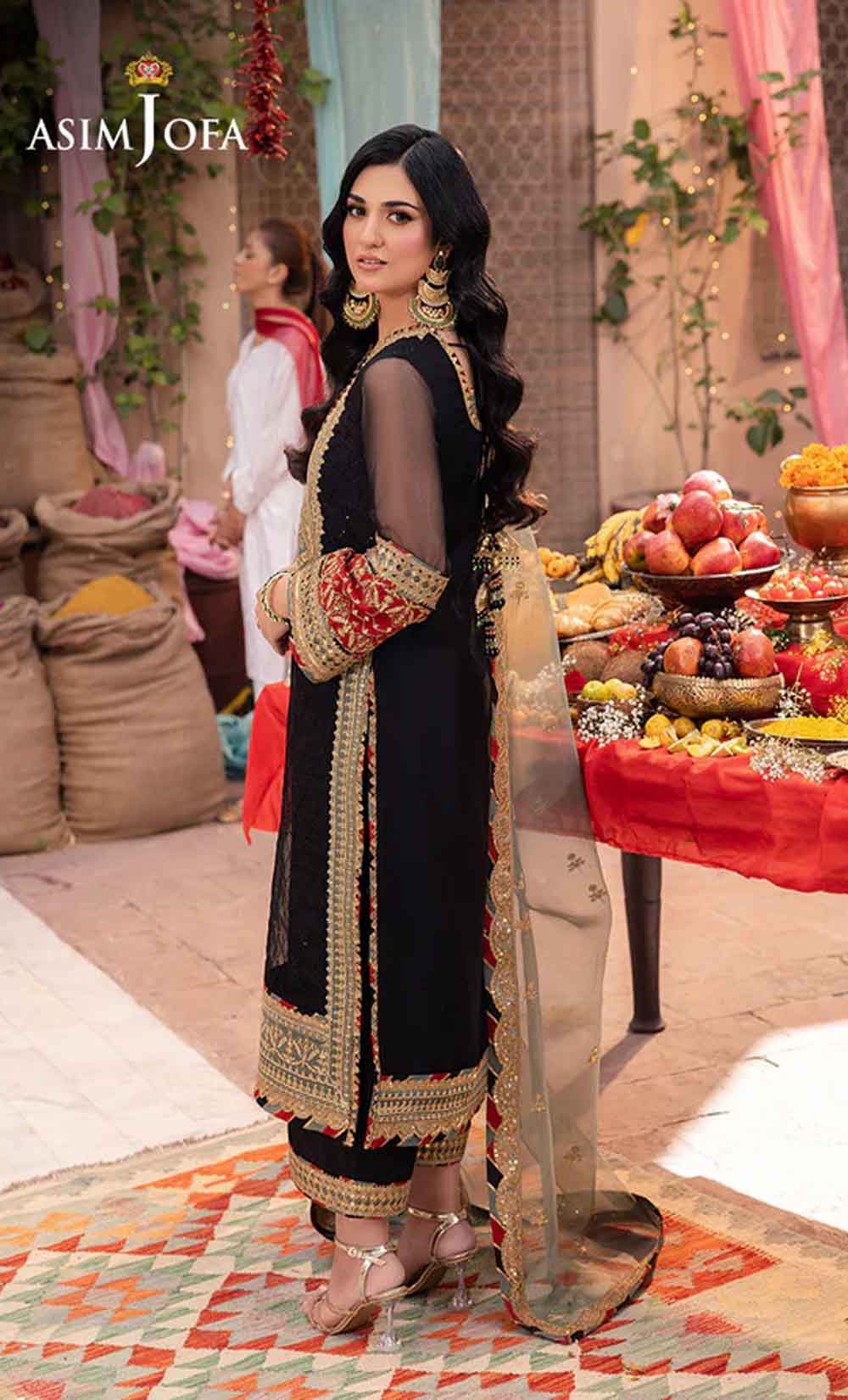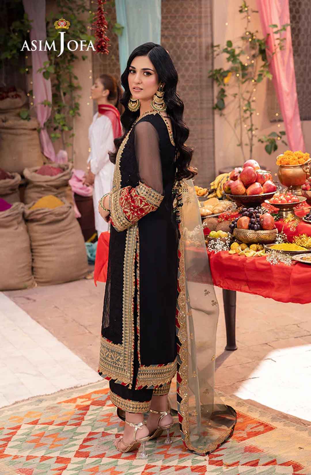 Radiate like a freshly unearthed gemstone with this intricately designed ensemble – a masterpiece waiting to be unveiled. The beautifully embroidered shirt shimmers with black sequins and threadwork, framed by a ravishing neckline and border. Gold sequins and zari work dance across the surface, while sage and rust appliques add pops of color like wildflowers blooming on a vibrant meadow. Paired with a stunning sage organza dupatta featuring beautiful embroidery, complementing the overall look, this ensemble is a captivating tale of cultural elegance, a statement piece destined to turn heads