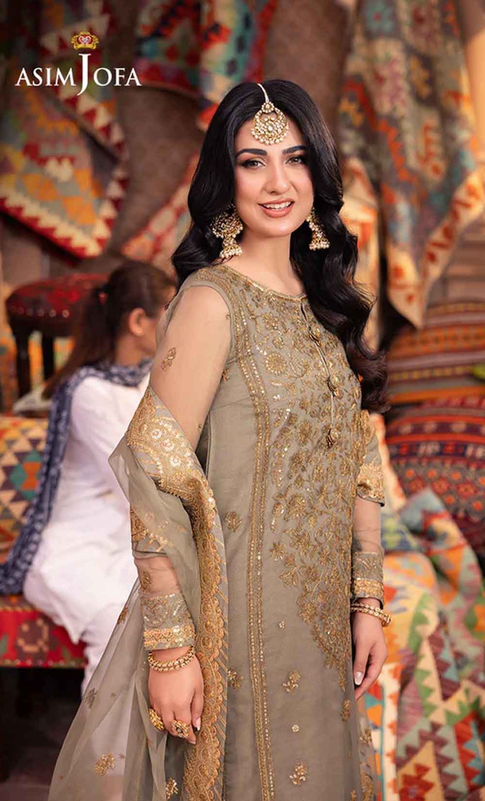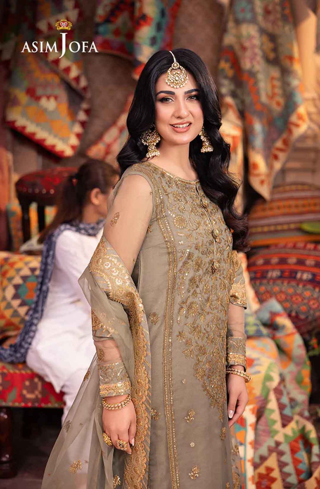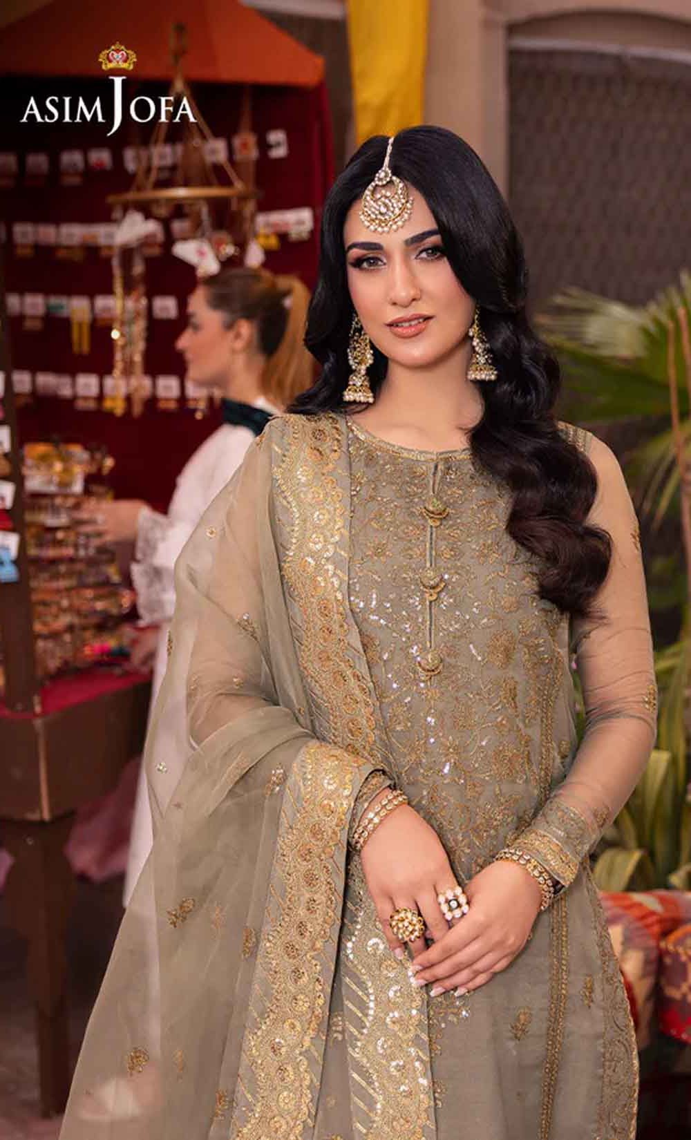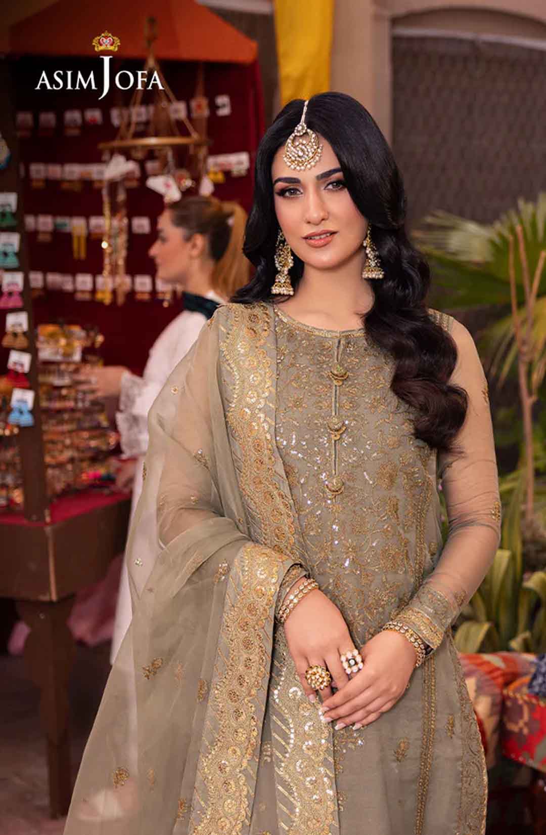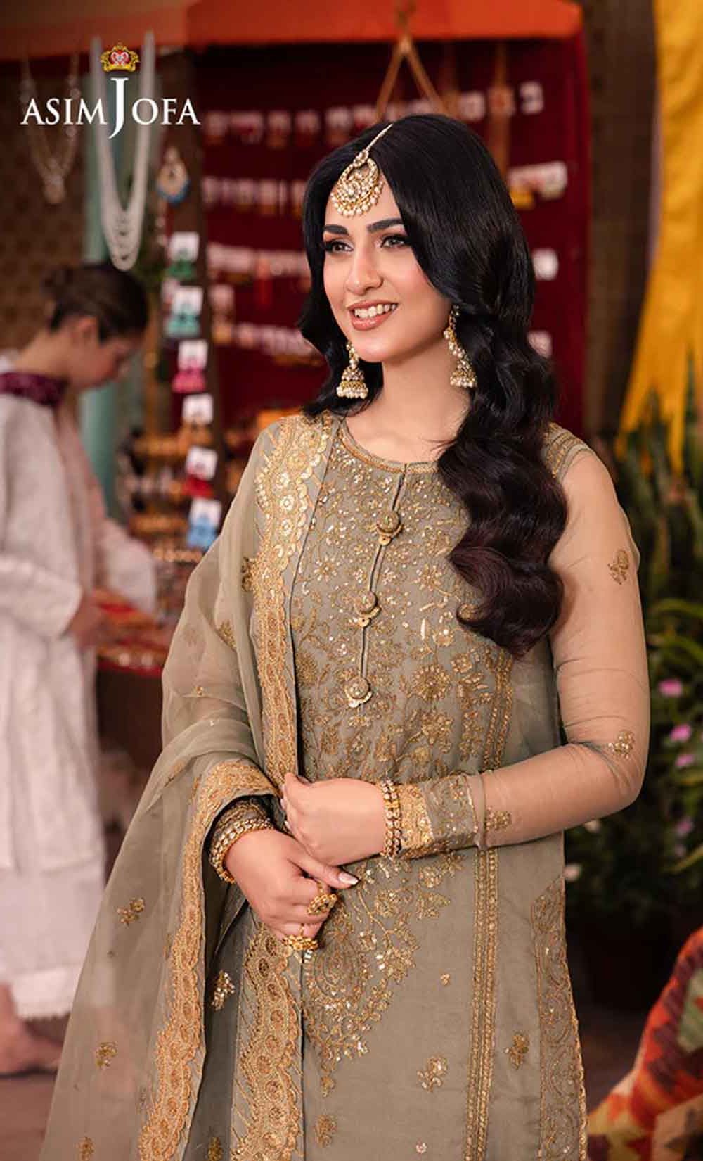 Embrace tranquility in this calming sage green ensemble, a symphony of nature’s harmony. The beautifully embellished shirt glows with light gold sequins, gently shimmering like a sunshine in the opaqueness of clouds. The neckline and border evoke the graceful curves of rolling hills, accentuated by the beauty of two-toned antique gold zari work. Paired with a luxurious, sheer dupatta, embroidered with pretty motifs all over, the ensemble is completed with an air of aesthetical elegance.