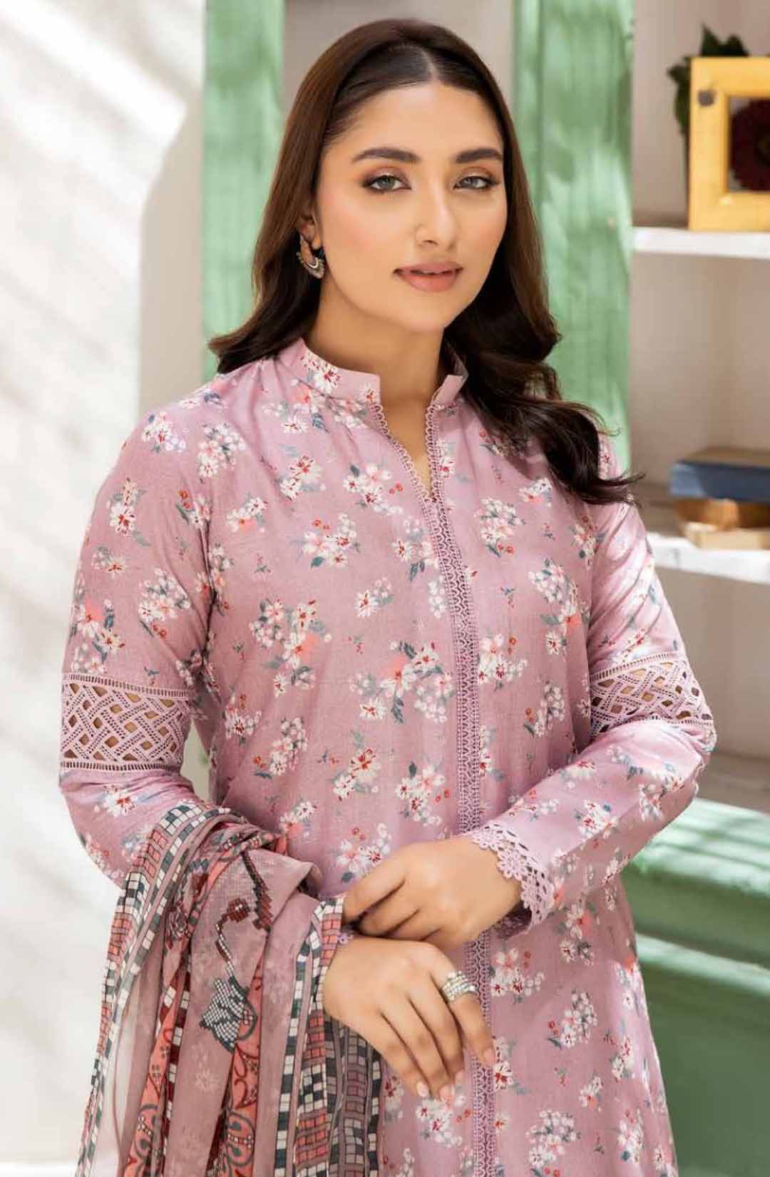 - Embroidered Printed Chikankari Lawn Shirt